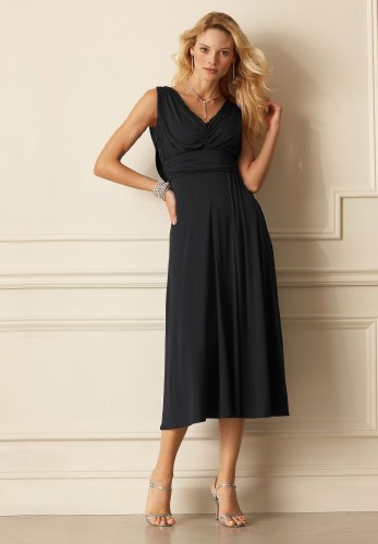 Look instantly slim & flawless in a dress featuring extraordinary shaping benefits. Imported.Built-in power-mesh slip trims from your natural waist to above the knee seamlesslySmoothes 360 at the hips, thighs, tummy and waistBeautiful mid-length style with draped V-necklineDramatic cowl-back and flattering ruched waist Polyester/spandex; Polyester/spandex lining; Machine washMisses 28' from natural waist