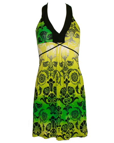 Cheap Halter Knit Dress Green and Yellow Floral Print Review